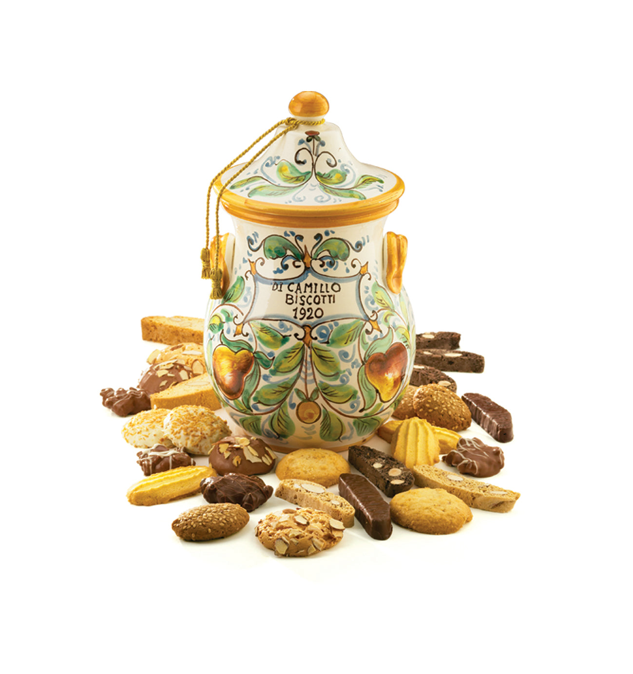 The charming compact pear shape of this jar plays host to an intricate vegetative design with two vividly realized golden pears, the crowning touch. Completely handmade and hand-painted in the Tuscan village of Montelupo, this jar will find a home in any kitchen in the world.